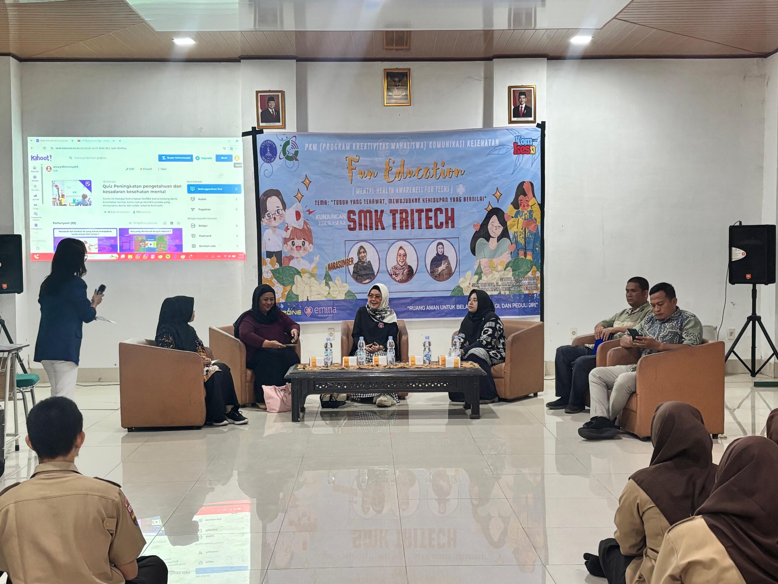 MEDAN- Mahasiswa Universitas Medan Area (UMA) Medan melalui program Kreativitas Mahasiswa (PKM) menggelar Talkshow Komunikasi Kesehatan bertema “Tubuh yang Terawat Mewujudkan Kehidupan yang Bernilai”. Kegiatan yang digelar di SMK Tritech Informatika Medan ini bertujuan untuk meningkatkan pemahaman generasi muda akan pentingnya kesehatan fisik dan mental.